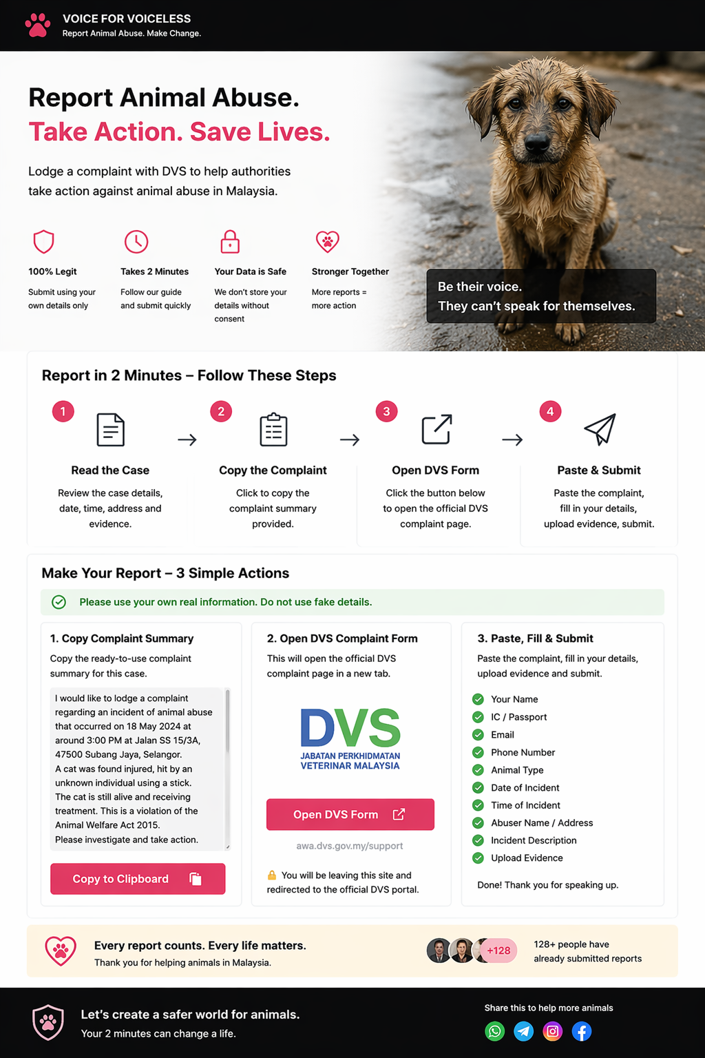 Lodge a complaint with DVS to help authorities take action against animal abuse in Malaysia.